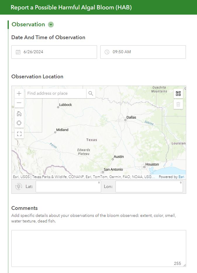 To see all golden alga bloom reports from December 2018 to March 2024 click here