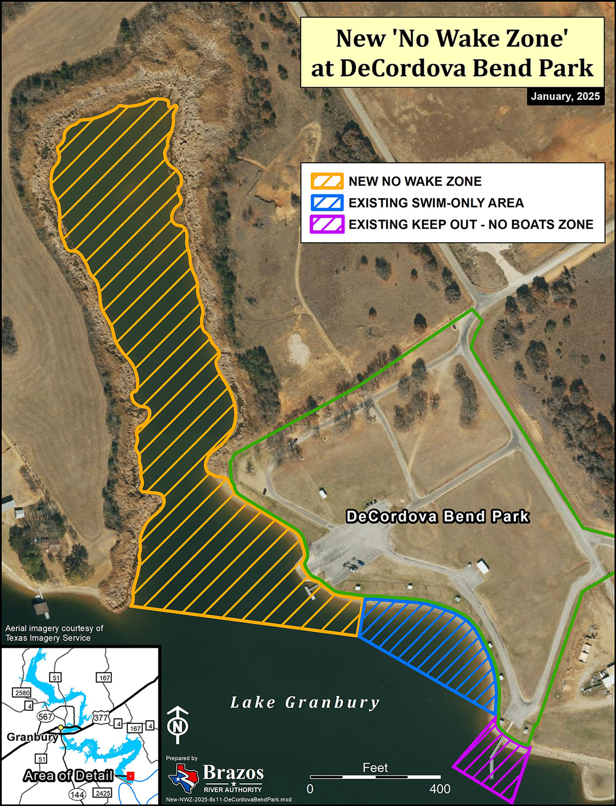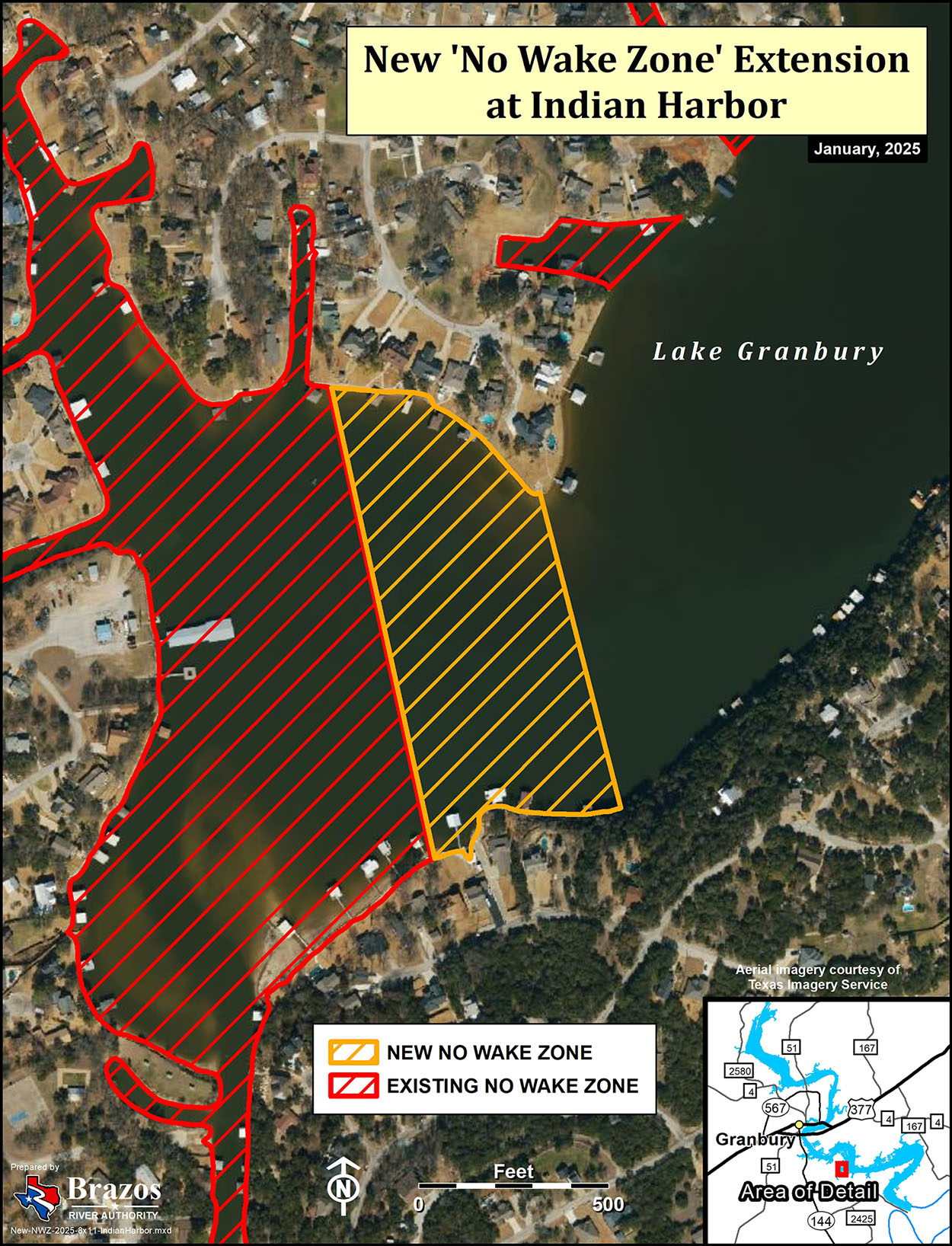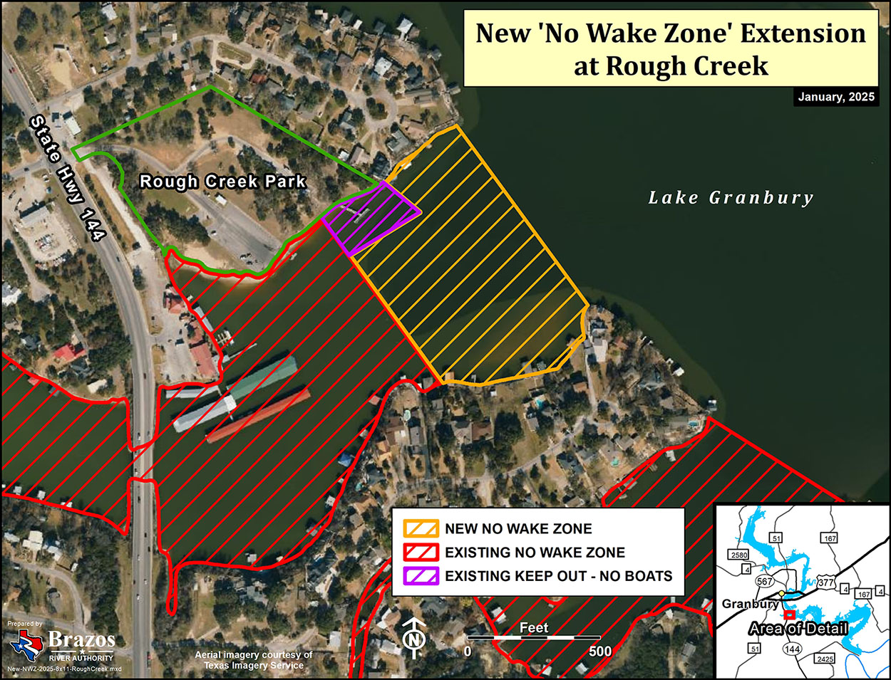 As a result, the BRA has created one new and extended three existing No-Wake Zones on Lake Granbury.