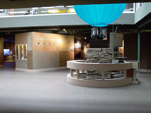In addition to the Brazos River exhibit, the Science Spectrum & Omni Theater features physical science exhibits, the Lubbock Children’s Museum, live animal shows, and an animatronic Tyrannosaurus Rex and several other attractions.